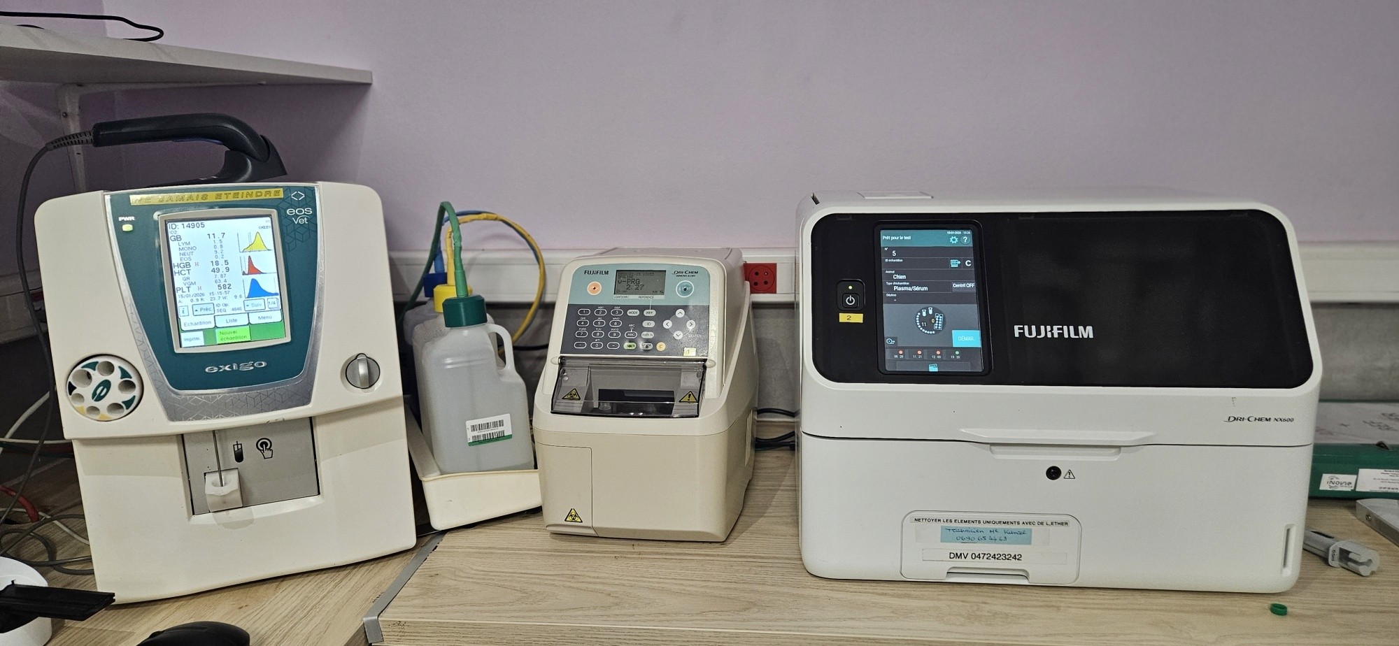 Dépistage de certaines maladies : Dirofilariose (vers du cœur), Ehrlichioses canines (maladies à tiques), Parvovirose, Leucose féline (felV), FIV (Sida du chat)...